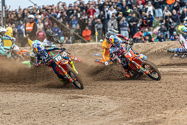 Lucas Coenen and Simon Laengenfelder delivered commanding performances at the Grand Prix of Sardinia, round four of the 2026 FIM Motocross World Championship. Racing in the challenging sand of Riola Sardo, Red Bull KTM Factory Racing swept both premier and MX2 class victories, extending their championship leads in both categories.